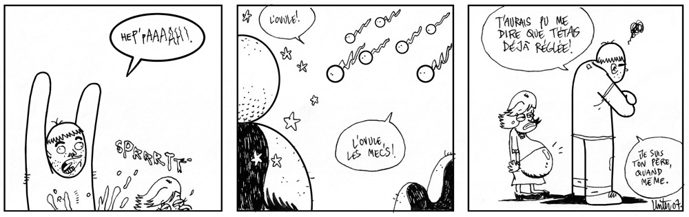 > Les auteurs de gauche à droite et de haut en bas : Elric Dufau, Stéphane Girod (1), Radi, Trip, Frèd Langout (1), Stéphane Girod (2), Yannick Marchat, Frèd Langout (2)
